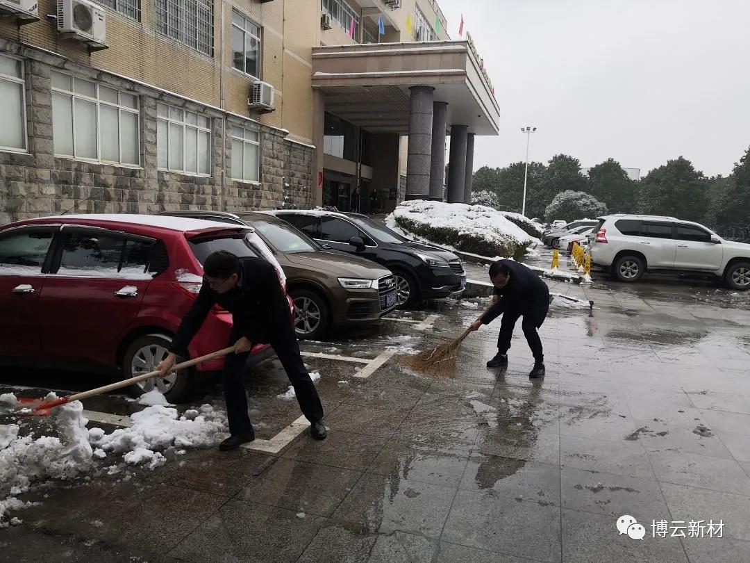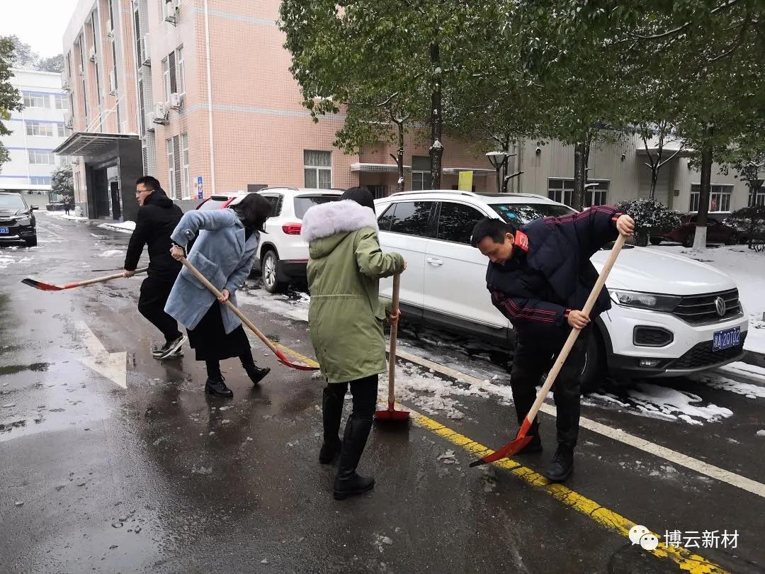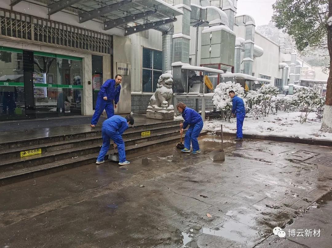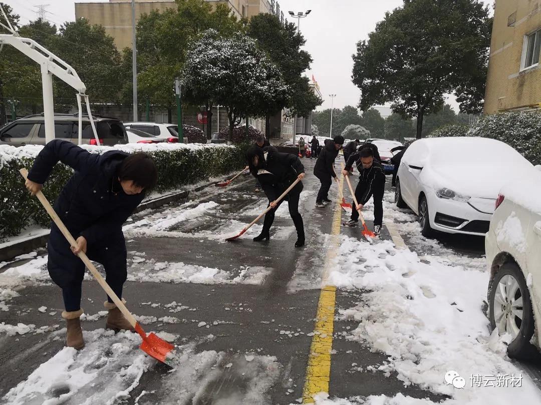周末的一场大雪为我们带来了玉树琼花的美景,,,,,,,但也给路面带来了大宗积雪和冰冻,,,,,,,给交通出行和生爆发涯带来了未便和清静隐患。。。。。。。为了利便各人周一上班的出行清静,,,,,,,住在好博(中国)体育园区的党员和入党起劲分子冒着风雪,,,,,,,连夜对好博(中国)体育新材园区内主要蹊径的积雪举行起源清扫。。。。。。。
